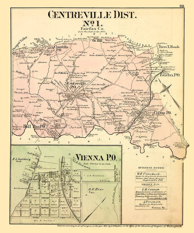 1879 Map of Centreville District Fairfax County Virginia