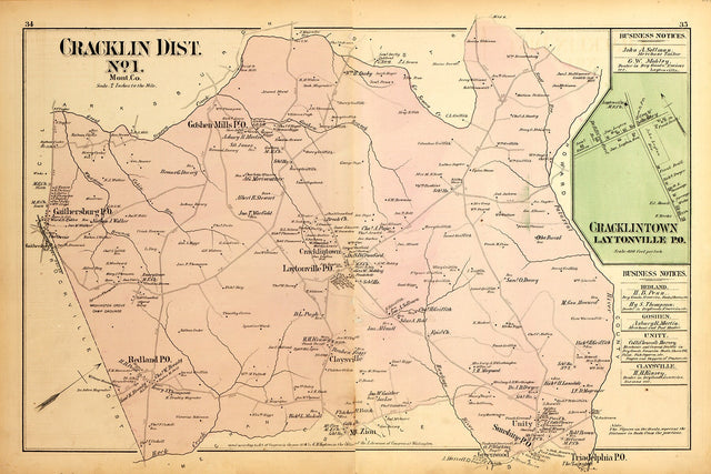 1879 Map of Cracklin District Montgomery County Maryland - 16" x 24" Matte is backordered and will ship as soon as it is back in stock.