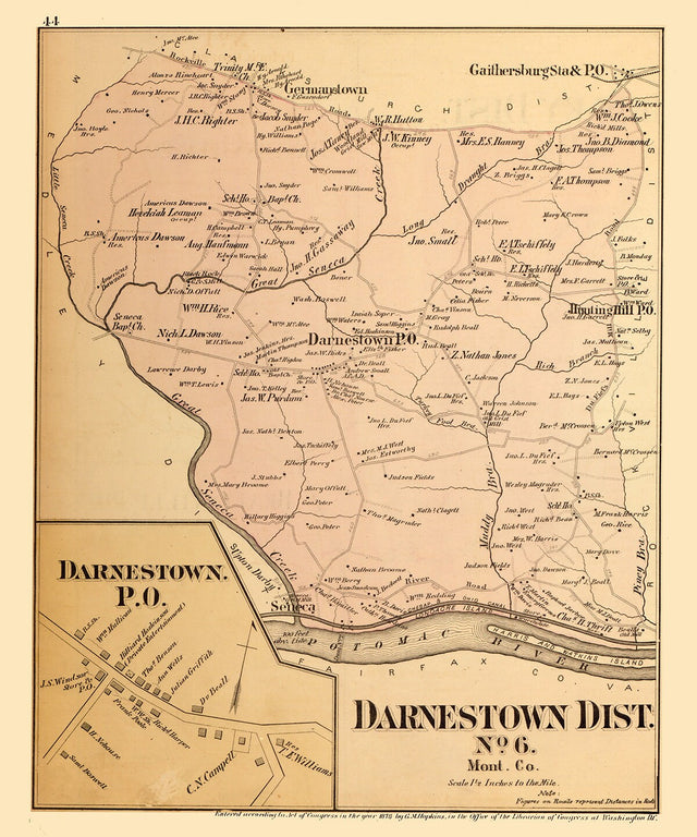 1879 Map of Darnestown District Montgomery County Maryland - 16" x 20" Matte is backordered and will ship as soon as it is back in stock.