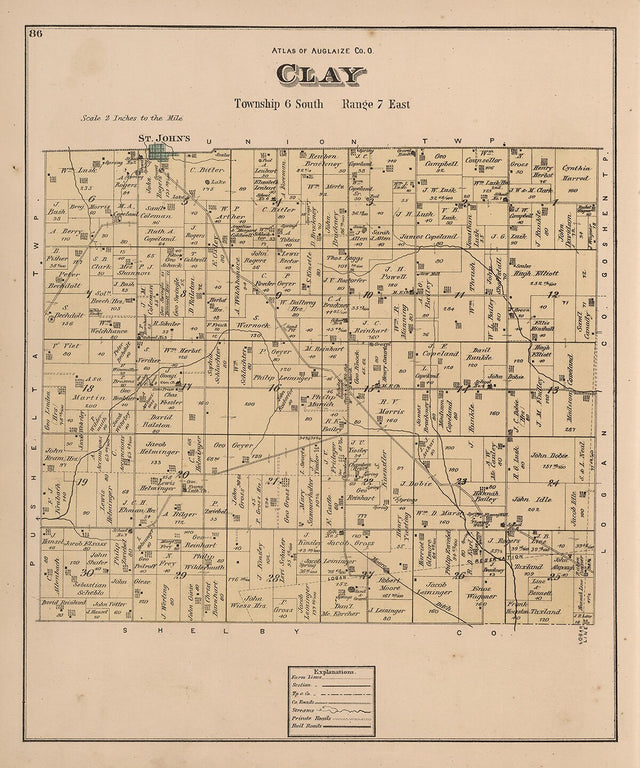 1880 Map of Clay Township Auglaize County Ohio - 16" x 20" Matte is backordered and will ship as soon as it is back in stock.
