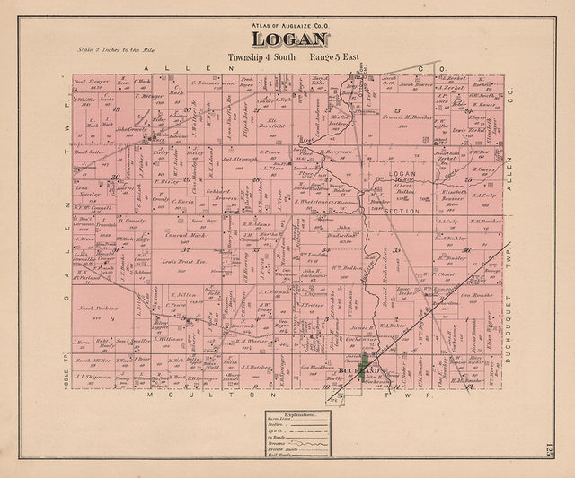 This map shows towns, roads, boundary lines, land owner names, buildings, place names, and more.