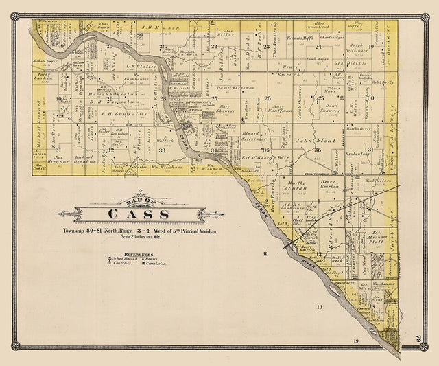 1885 Map of Cass Township Cedar County Iowa