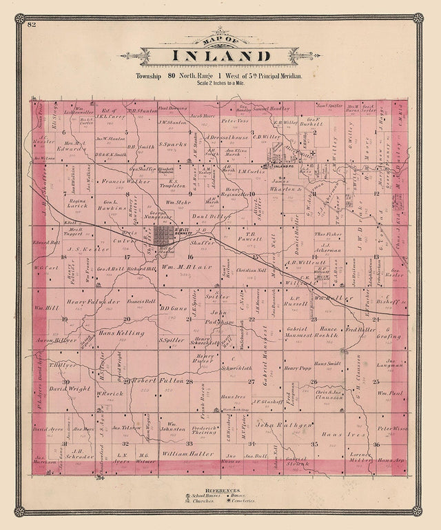 1885 Map of Inland Township Cedar County Iowa - 16" x 20" Matte is backordered and will ship as soon as it is back in stock.
