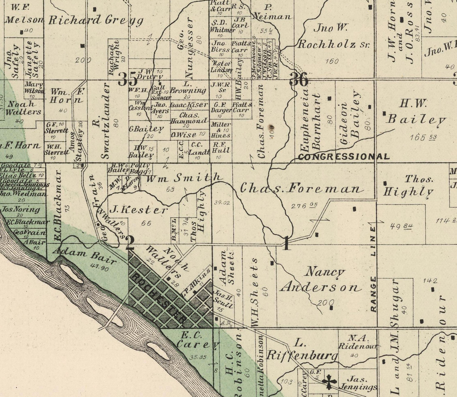 This map shows towns, roads, boundary lines, land owner names, buildings, historic places, and more.