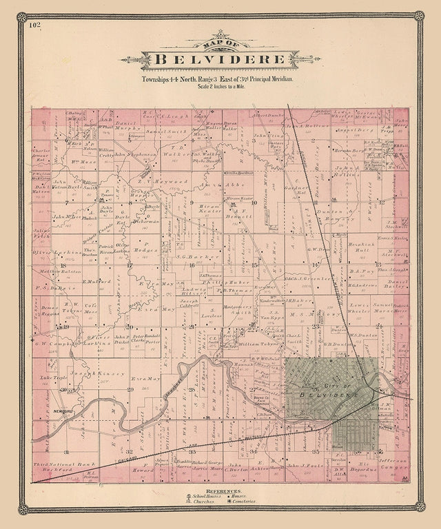 1886 Map of Belvidere Township Boone County Illinois - 16" x 20" Matte is backordered and will ship as soon as it is back in stock.