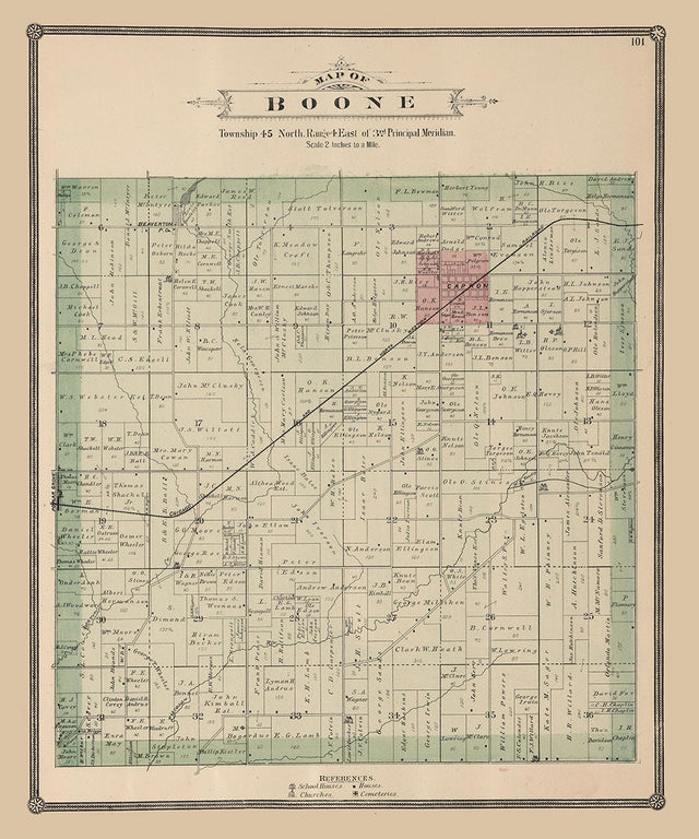 1886 Map of Boone Township Boone County Illinois