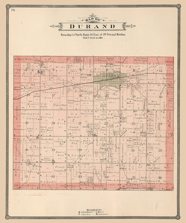 1886 Map of Durand Township Winnebago County Illinois - 16" x 20" Matte is backordered and will ship as soon as it is back in stock.