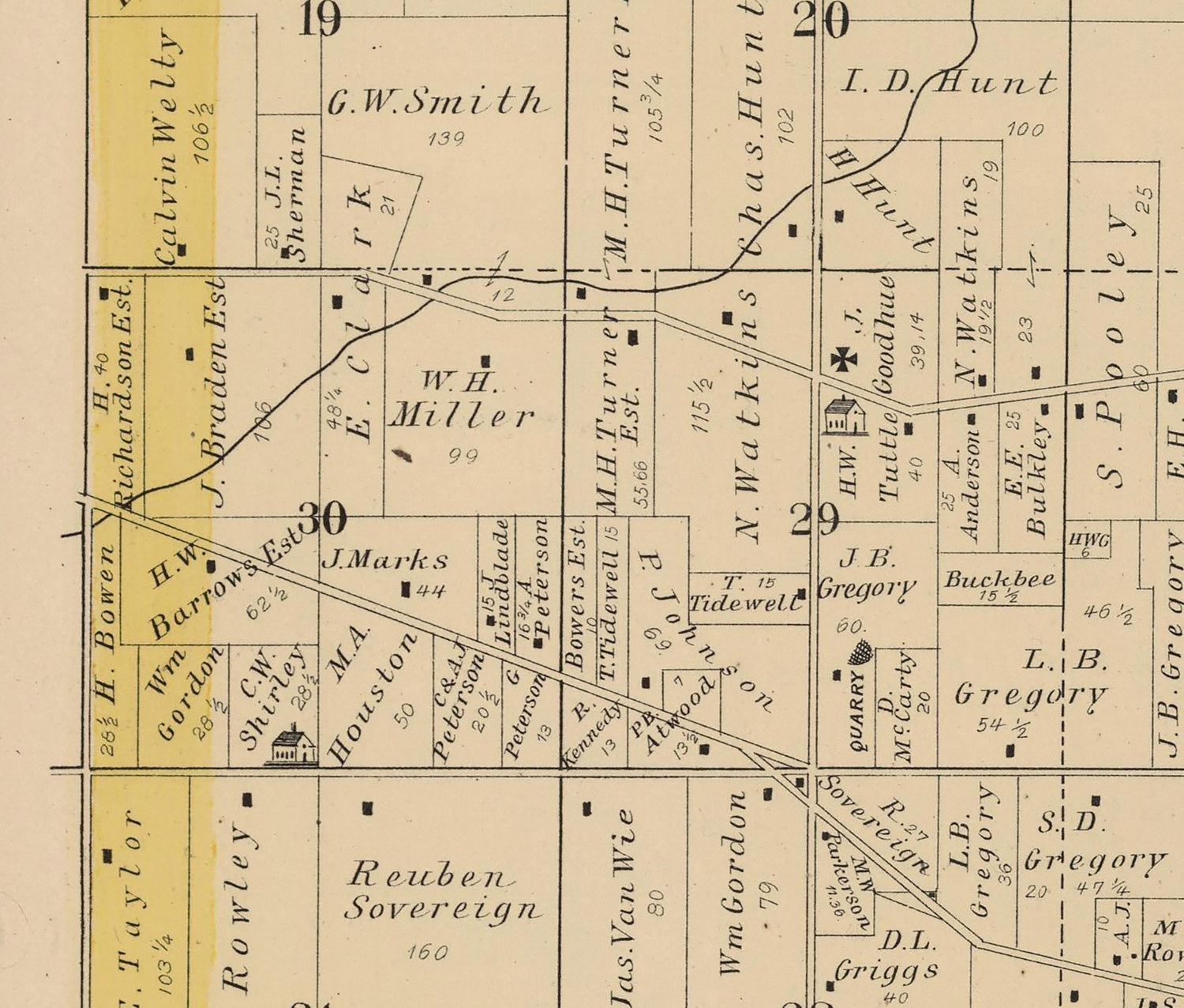 This map shows roads, boundary lines, buildings, family names, historic places, and more.