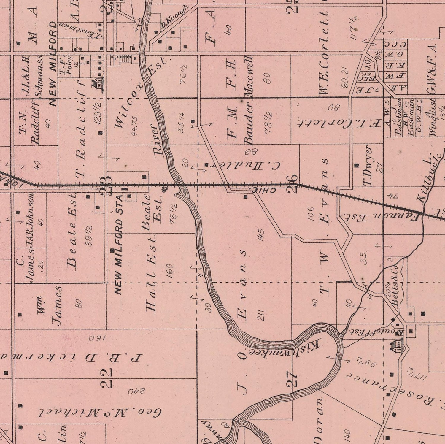 1886 Map of New Milford Township Winnebago County Illinois
