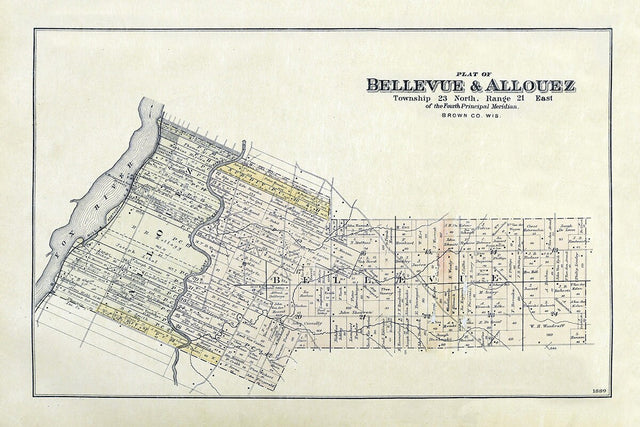 1889 Map of Bellevue & Allouez Township Brown County Wisconsin - 16" x 24" Matte is backordered and will ship as soon as it is back in stock.