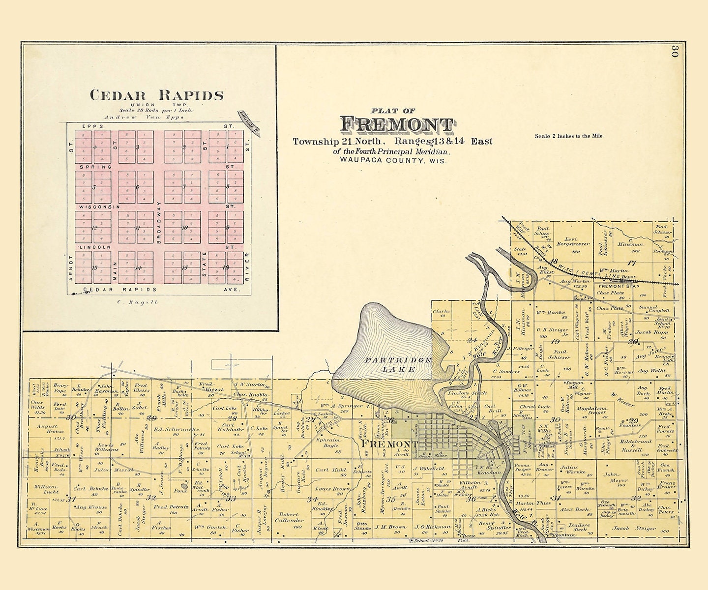 1889 Map of Fremont Township Waupaca County Wisconsin - 16" x 20" Matte is backordered and will ship as soon as it is back in stock.