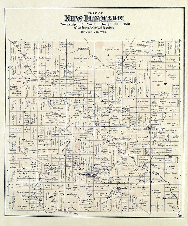 1889 Map of New Denmark Township Brown County Wisconsin - 16" x 20" Matte is backordered and will ship as soon as it is back in stock.