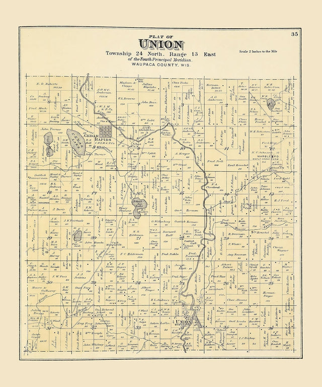 1889 Map of Union Township Waupaca County Wisconsin - 16" x 20" Matte is backordered and will ship as soon as it is back in stock.