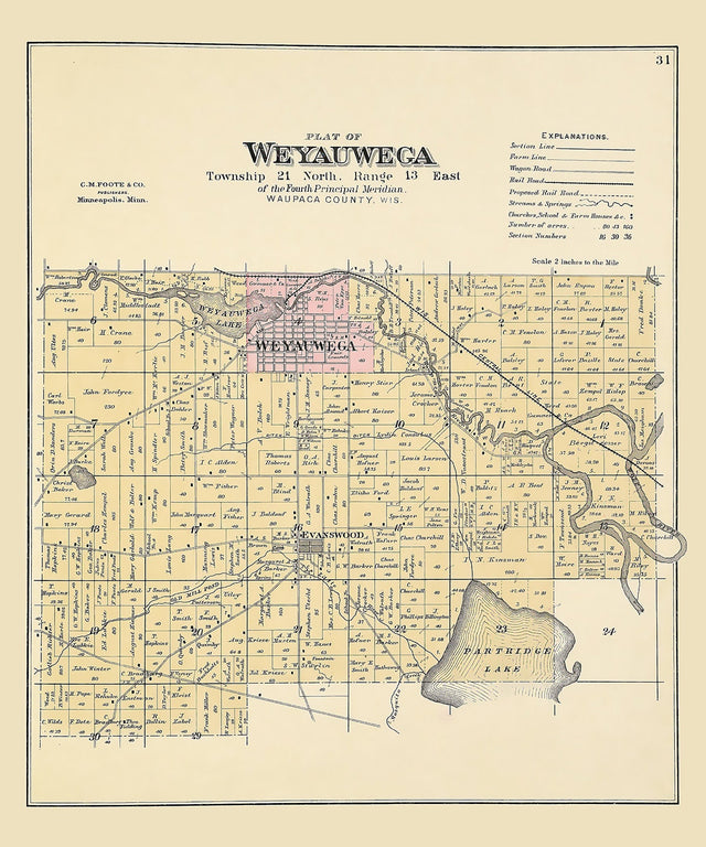 1889 Map of Weyauwega Township Waupaca County Wisconsin - 16" x 20" Matte is backordered and will ship as soon as it is back in stock.