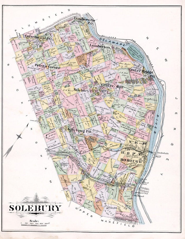 1891 Map of Solebury Township Bucks County Pennsylvania