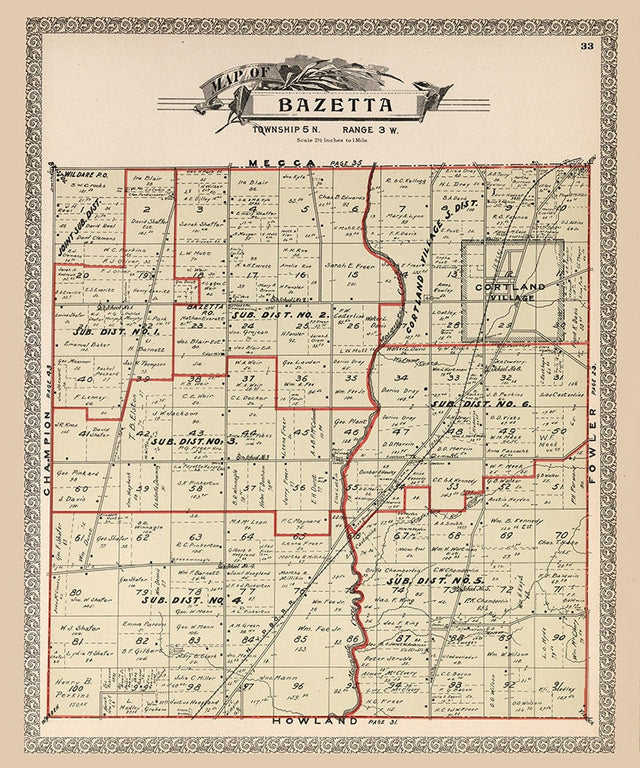 1899 Map of Bazetta Township Trumbull County Ohio - 16" x 20" Matte is backordered and will ship as soon as it is back in stock.