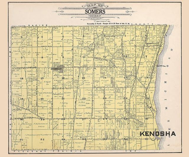 1908 Map of Somers Township Kenosha County Wisconsin - 16" x 20" Matte is backordered and will ship as soon as it is back in stock.