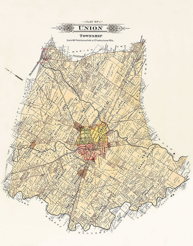 1913 Map of Union Township Fayette County Ohio - 11" x 14" Matte is backordered and will ship as soon as it is back in stock.