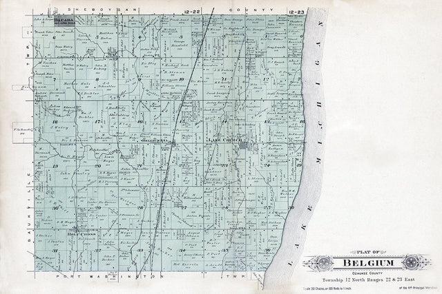 1915 Map of Belgium Township Ozaukee County Wisconsin