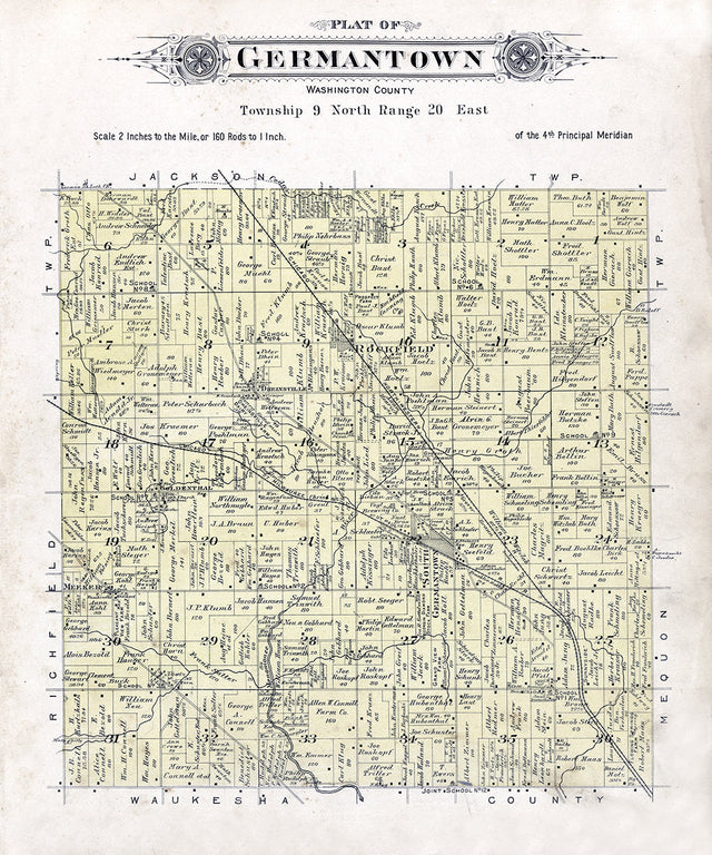 1915 Map of Germantown Township Washington County Wisconsin - 16" x 20" Matte is backordered and will ship as soon as it is back in stock.