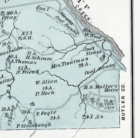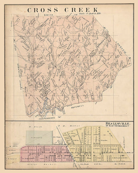1876 Map of Cross Creek Township Washington County Pa Beallsville