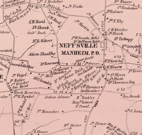 1864 Map of Manheim Township Lancaster County Pennsylvania