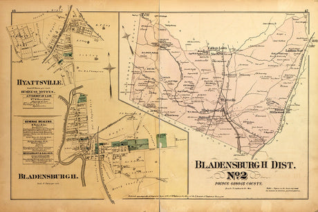 1879 Map of Bladensburgh District Montgomery County Maryland