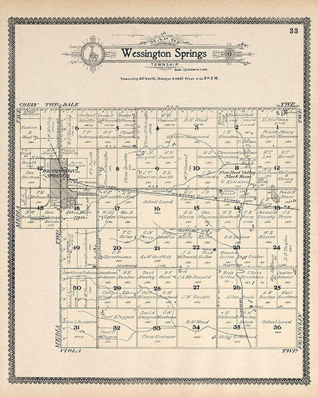 1909 Map of Wessington Springs Township Jerauld County South Dakota