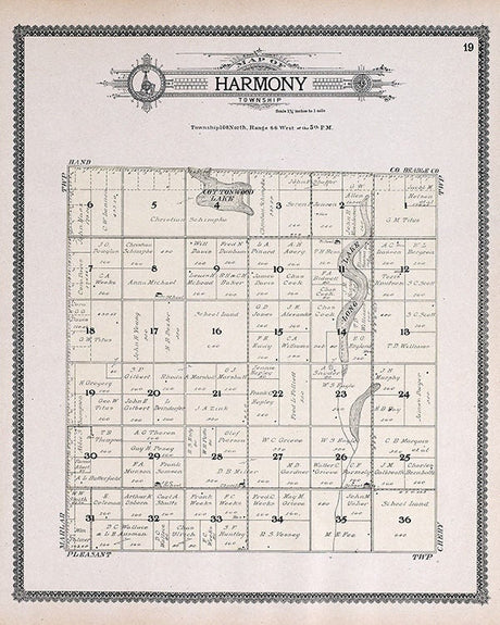 1909 Map of Harmony Township Jerauld County South Dakota