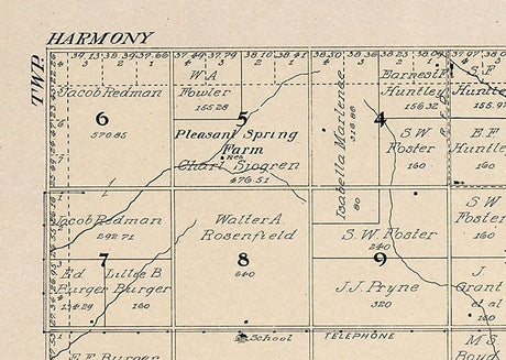 1909 Map of Pleasant Township Jerauld County South Dakota