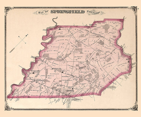 1875 Map of Springfield Township Delaware County Pennsylvania
