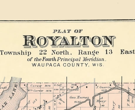 1889 Map of Royalton Township Waupaca County Wisconsin