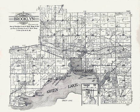 1923 Map of Brooklyn Township Green Lake County Wisconsin