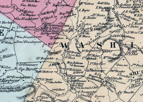 1862 Map of Long Swamp District Hereford and Washington Townships Berks County Pennsylvania