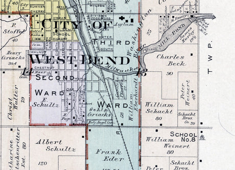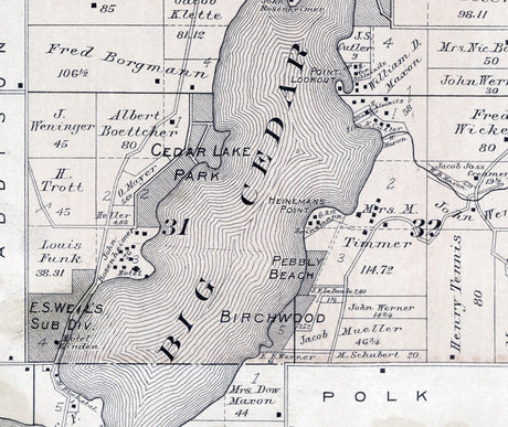 1915 Map of West Bend Township Washington County Wisconsin Big Cedar Lake