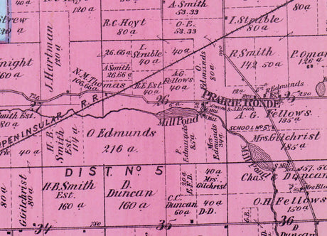 1873 Map of Prairie Ronde Township Kalamazoo County Michigan