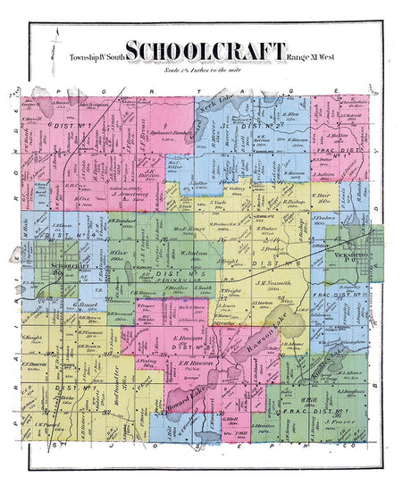 1873 Map of Schoolcraft Township Kalamazoo County Michigan
