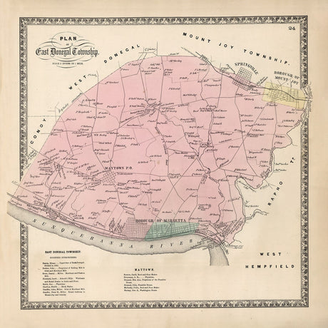 1864 Map of East Donegal Township Lancaster County Pennsylvania