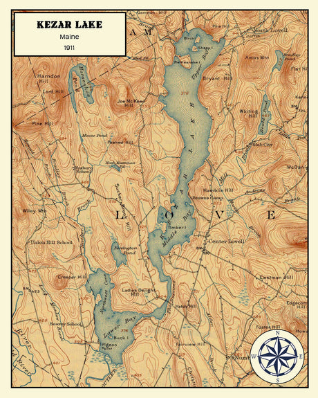 1911 Map of Kezar Lake Lovell and Oxford County Maine