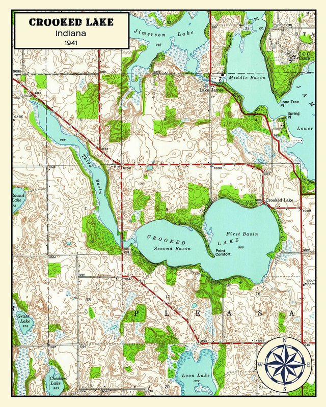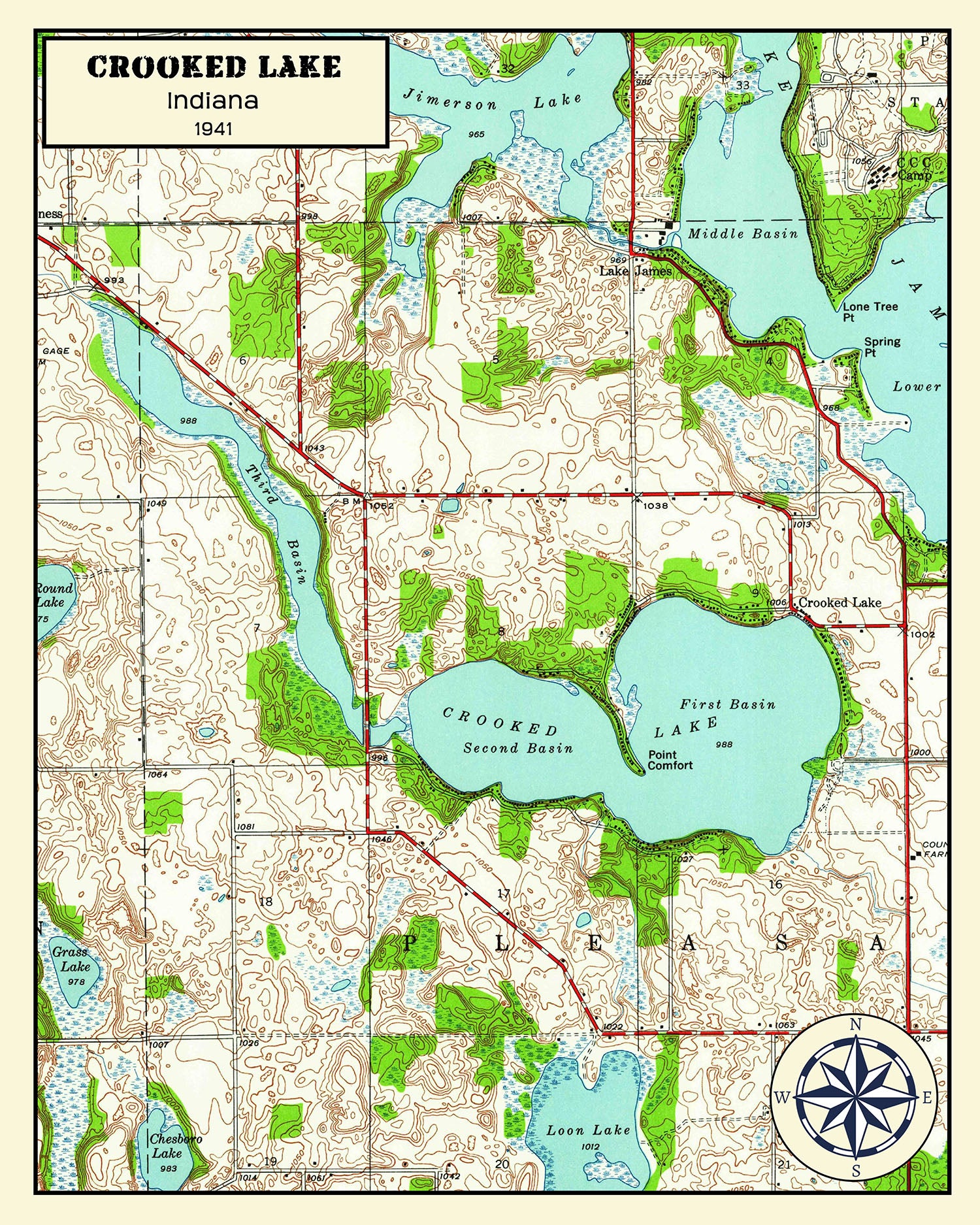 1941 Map of Crooked Lake Indiana - 16" x 20" Matte is backordered and will ship as soon as it is back in stock.