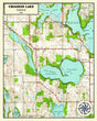 This map shows the lake, shoreline detail, waterways, wetlands, topography, roads, buildings, place names, and more.
