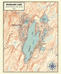 This map shows the lake, smaller lakes, topography, roads, buildings, place names, and more.