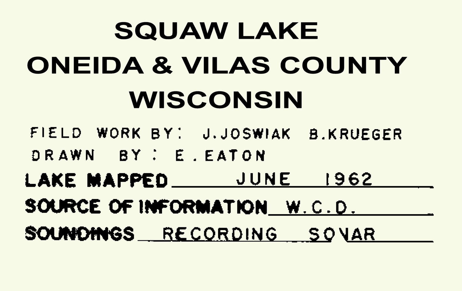1962 Map of Squaw Lake Oneida and Vilas County Wisconsin