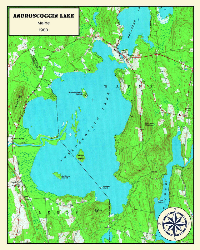 1980 Map of Androscoggin Lake Maine - 16" x 20" Matte is backordered and will ship as soon as it is back in stock.