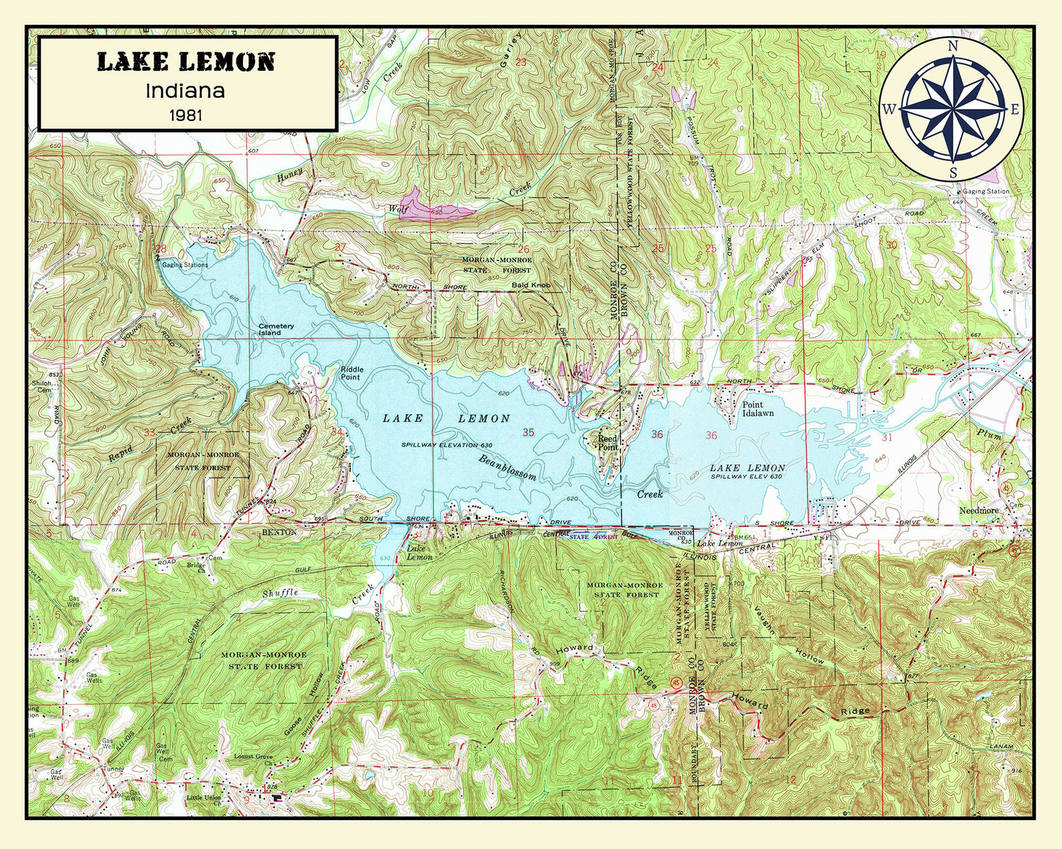 1981 Map of Lake Lemon Indiana is backordered and will ship as soon as it is back in stock.