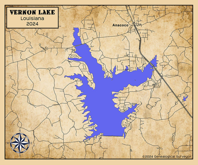 2024 Map of Vernon Lake Vernon Parish Louisiana