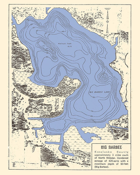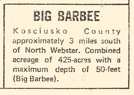 1940 Map of Big Barbee Lake Kosciusko County Indiana