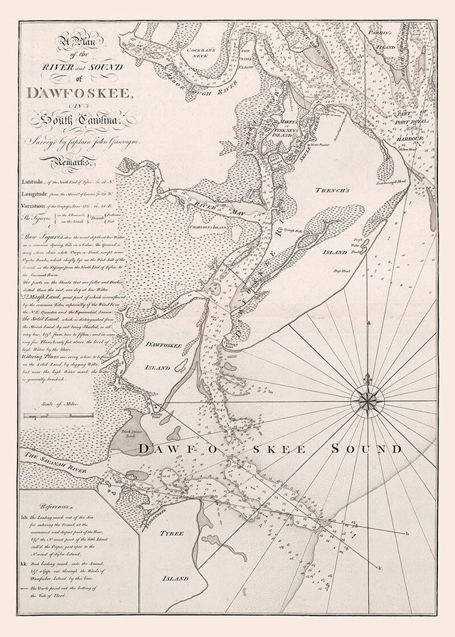 1776 Nautical Chart of Dawfoskee Sound South Carolina