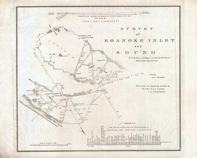 1829 Nautical Map of Roanoke Inlet and Sound North Carolina