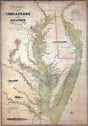 This historical nautical map shows lots of historic places and names along the shoreline of the Chesapeake and Delaware Bays.